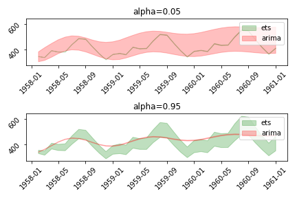 我注意到在为不同类型的算法( AutoETS和AutoARIMA )指定预测间隔时存在不一致之处。我不确定这是一个bug还是一个特性。