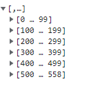 数组只在控制台中中断,因为它很长:(即:如果数组的长度大于100,则控制台将中断它以清楚地显示它。)如果您记录了长度,那么它将显示559,只需执行arr.length