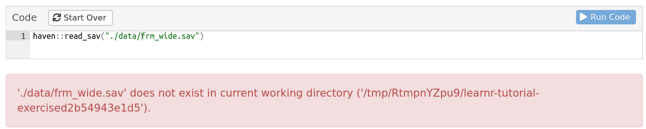 我试图写一个learnr教程,其中一个练习是导入一个SPSS数据集。来自learnr 文档