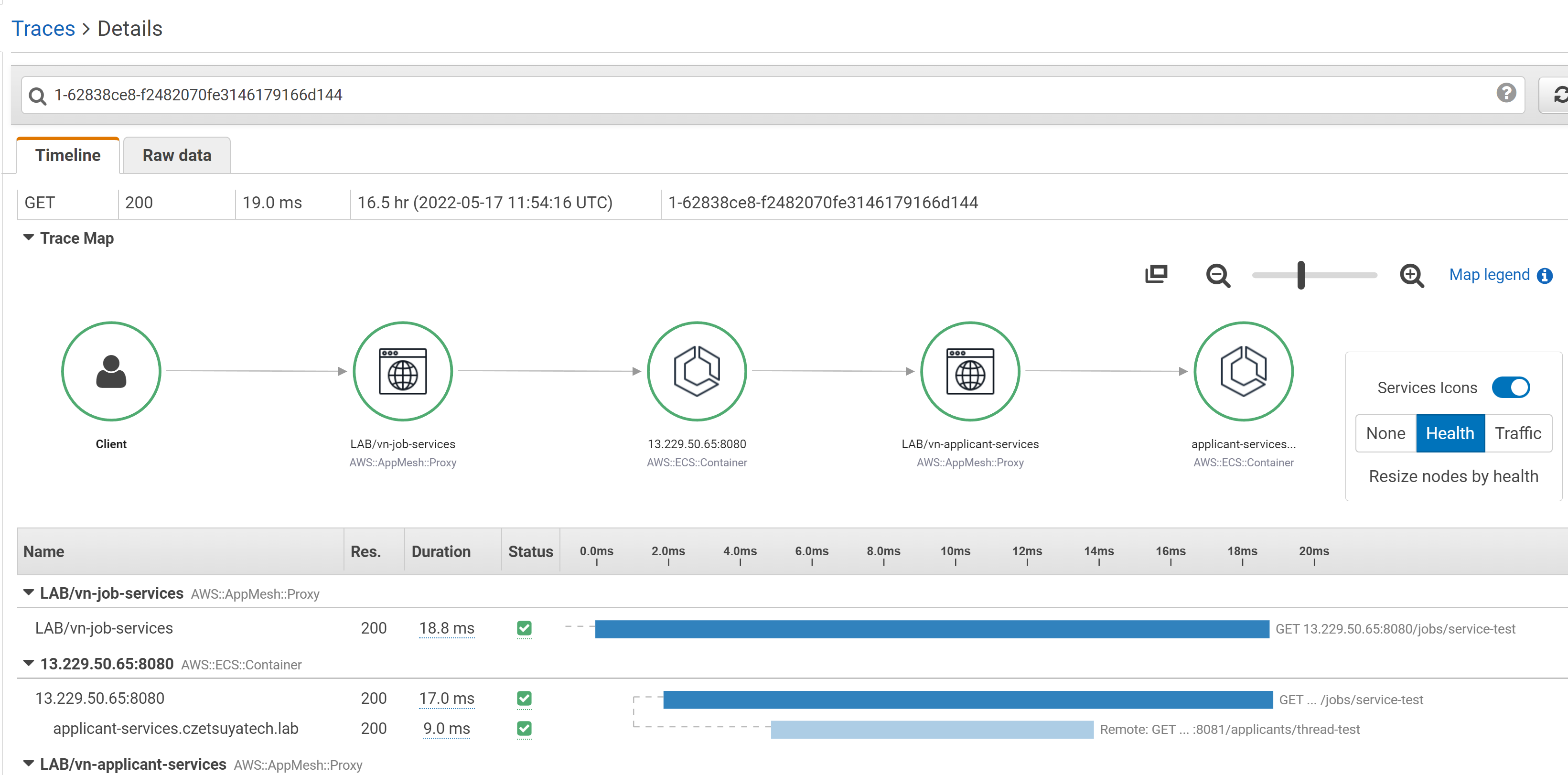 在AWS XRay中,我可以看到调用跟踪: