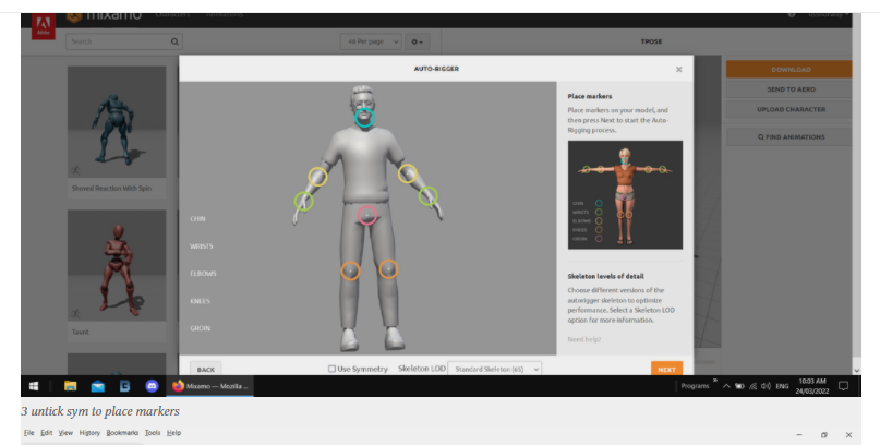 步骤2)将新字符上传到mixamo中,并按如下所示对位置进行勾选