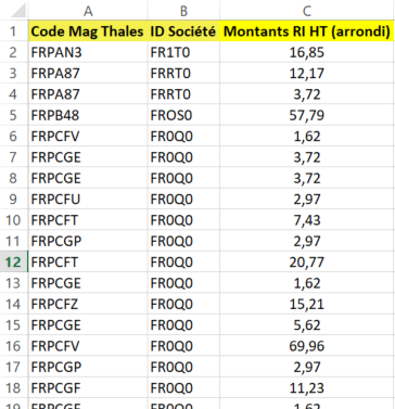 例如:对于商店ID FRPAN3,我应该有351,48。