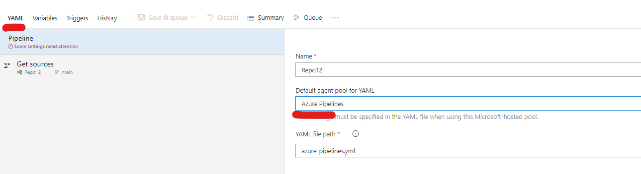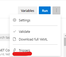 对于Yaml管道,您可以导航到编辑管道-> . ->触发器-> YAML ->管道->默认代理池