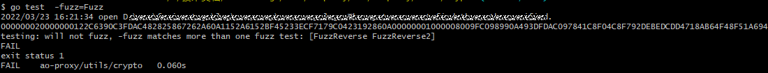 testing: will not fuzz, -fuzz matches more than one fuzz test: [FuzzReverse FuzzReverse2]就像这样:
