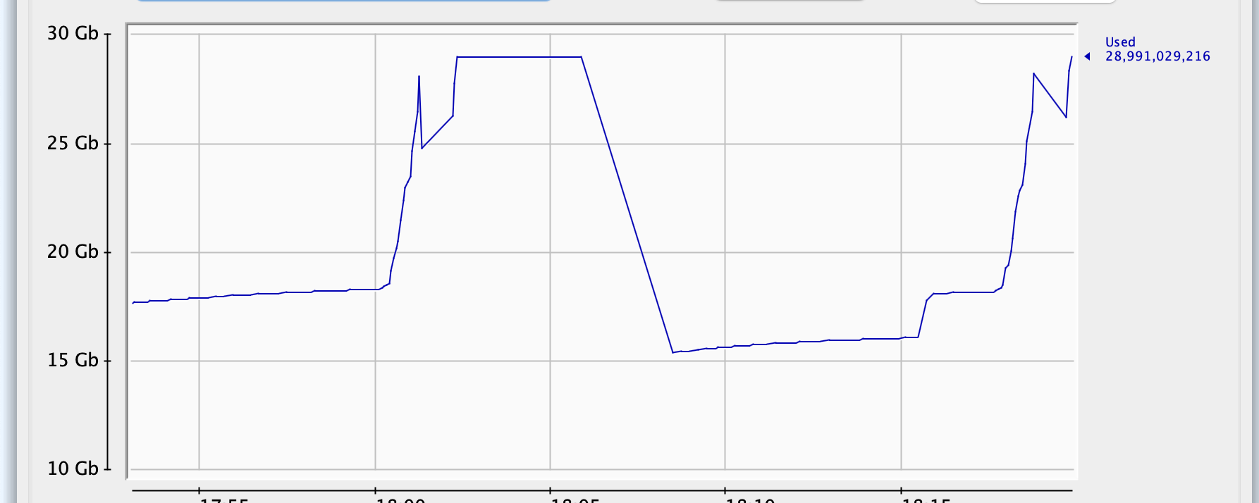 }, 0, 10, TimeUnit.MINUTES);我面临的问题是:每隔10分钟,老一代的空间就会有一个巨大的增长。我假设正在发生这种情况,因为刷新正在发生,旧对象没有像创建新对象那样被快速清除。这可以在下面的图表中看到。(注意:这个图表显示了CMS GC,但我在G1GC中得到了相同的结果)。
