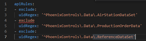 uidRegex: '^PhoenixControls\.Data\.ReferenceDataSet'给VS代码与YAML扩张尝试编辑YAML。它将突出这些错误: