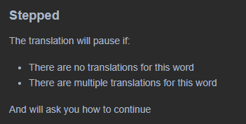 <p>The translation will pause if: