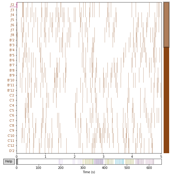 我在用mne读取我的脑电图数据。当我执行raw.plot()时,我得到的是这种类型的图像,而不是时间序列。我无法理解这一点。请帮帮忙。