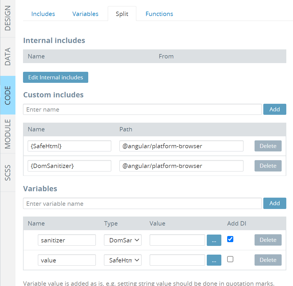 我可以将内容输入到Text和Image组件中,但是将字符串映射到HTML组件似乎不起作用,也不能将字符串映射到页面上设置的变量(输入为字符串)。我也尝试将$i对象映射到HTML,但这似乎并没有改变任何事情。
