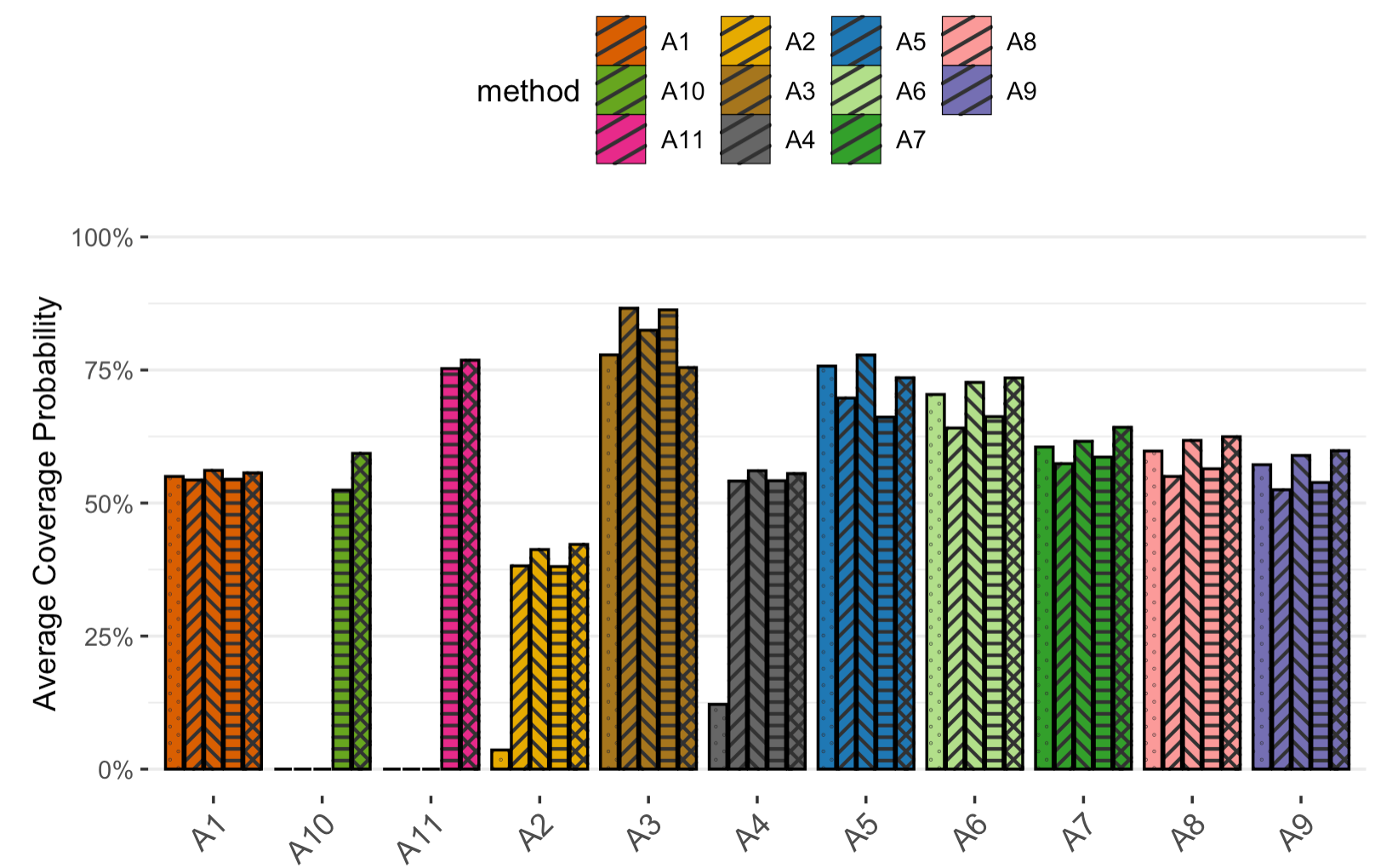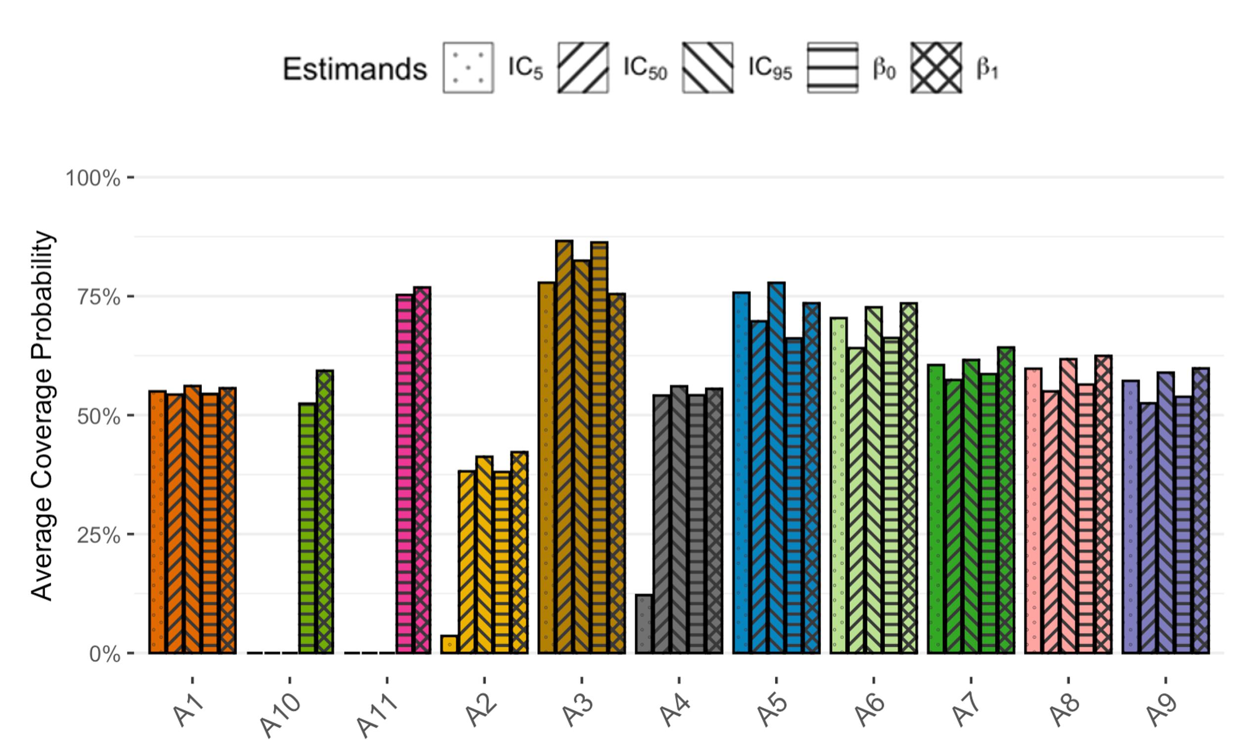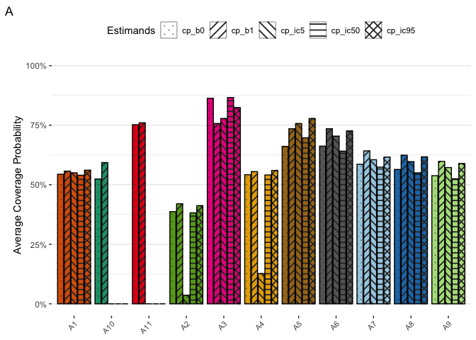 theme_bw() +ylab("Average Coverage Probability") + labs(tag="A") +