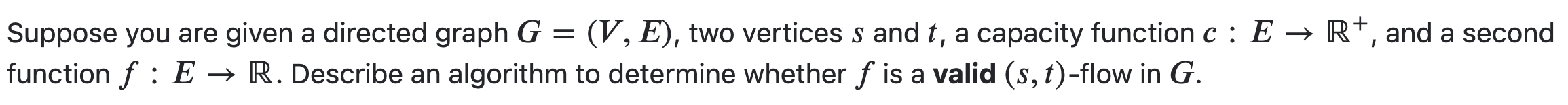 对于除和t以外的每个顶点,请检查计数器是否为0 (通过顶点的总流量为0。)。