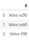 df = pd.DataFrame(['Volvo xc90', 'Volvo xc60', 'Volvo V90', 'abc'])