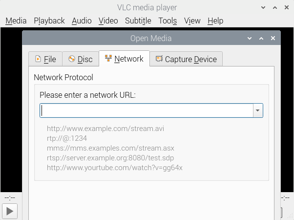 使用Vlc我做:媒体->开放网络流->网络->网址