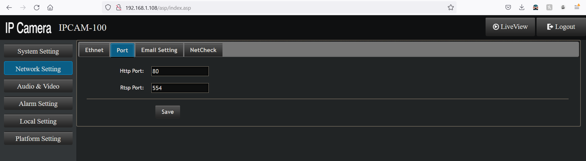 另外,554是Standart Rtsp端口,所以如果您有554,则不需要设置它们。rtsp://admin:password@192.168.1.108/h264Preview_01_main