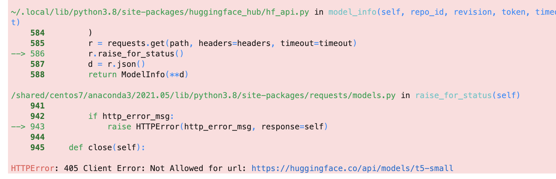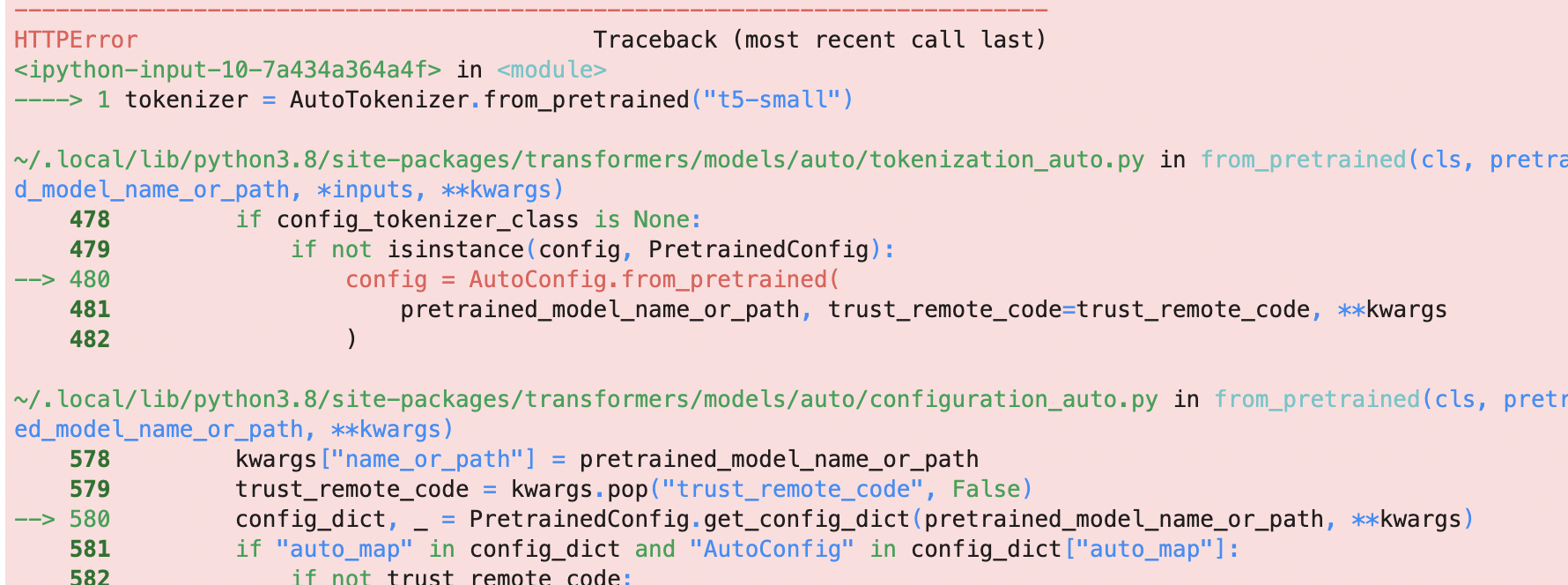 不,这不是一个bug,该方法试图检测模型的最新版本是否可用,这就是为什么它连接到回购程序。要完全脱机工作,需要将环境变量TRANSFORMERS_OFFLINE设置为1或yes (参见这里 313)。