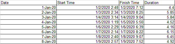2:34 1/3/2020 8:25 5.85