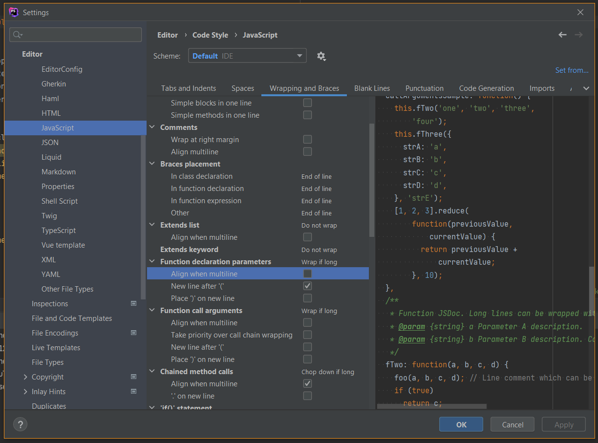 }在IDE设置中,我为JavaScript和TypeScript使用了Google JavaScript样式指南: