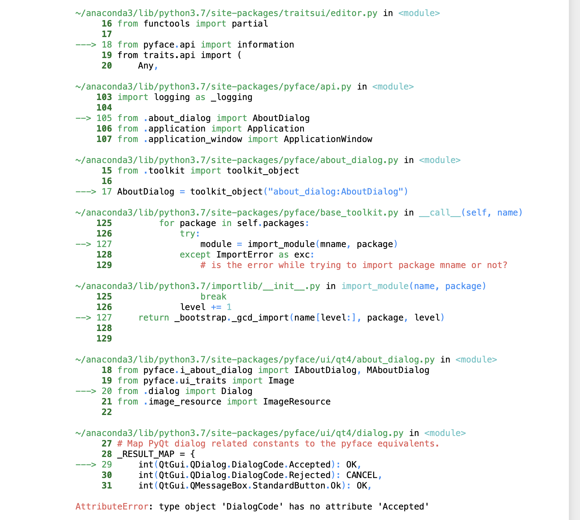 export ETS_TOOLKIT=export QT_API=pyqt5brew install pyside #(我在前面的步骤中也安装了pyside。可能是unnecessary)我也做了很多其他的事情,但这是复制有效步骤的步骤。我希望我没有错过一些我已经做过的事情(或者如果有不必要的步骤)。因为它改变了信任,所以很难从头恢复和测试。