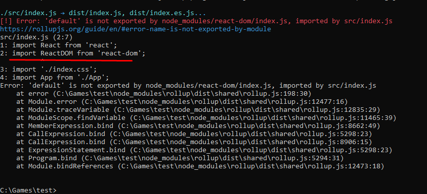 我试图用React.js创建组件库,为此我使用了Rollup.js。当我构建应用程序时,我在控制台中看到了这个错误。似乎汇总无法检测默认导出,我试图添加一个.babelrc文件配置,但不幸的是,它没有工作。我做错了什么,如何解决这个问题?