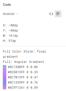 渐变是在Figma中生成的,下面是Figma检查中的android代码。