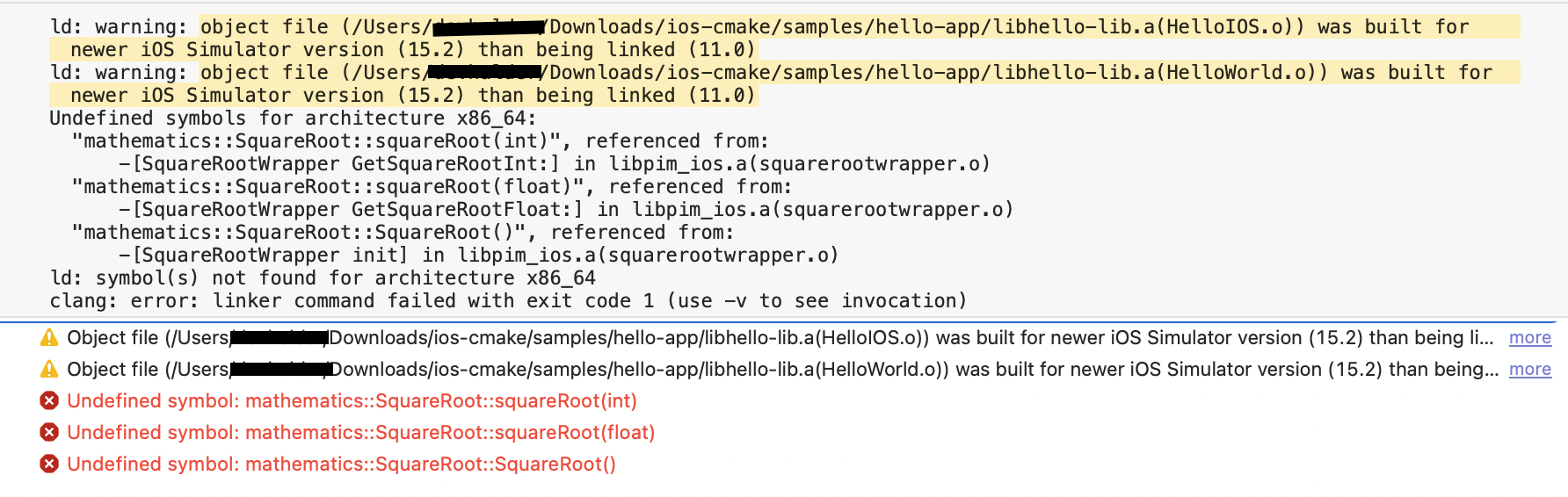 - squarerootwrapper.mm项目链接- https://github.com/devojoyti/CMakeLibrary