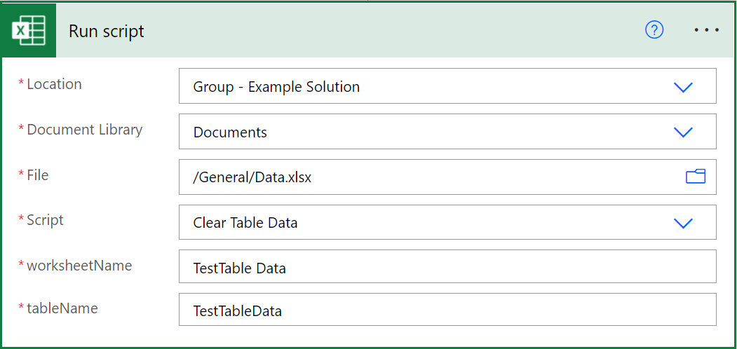 function main(workbook: ExcelScript.Workbook, worksheetName: string, tableName: string)