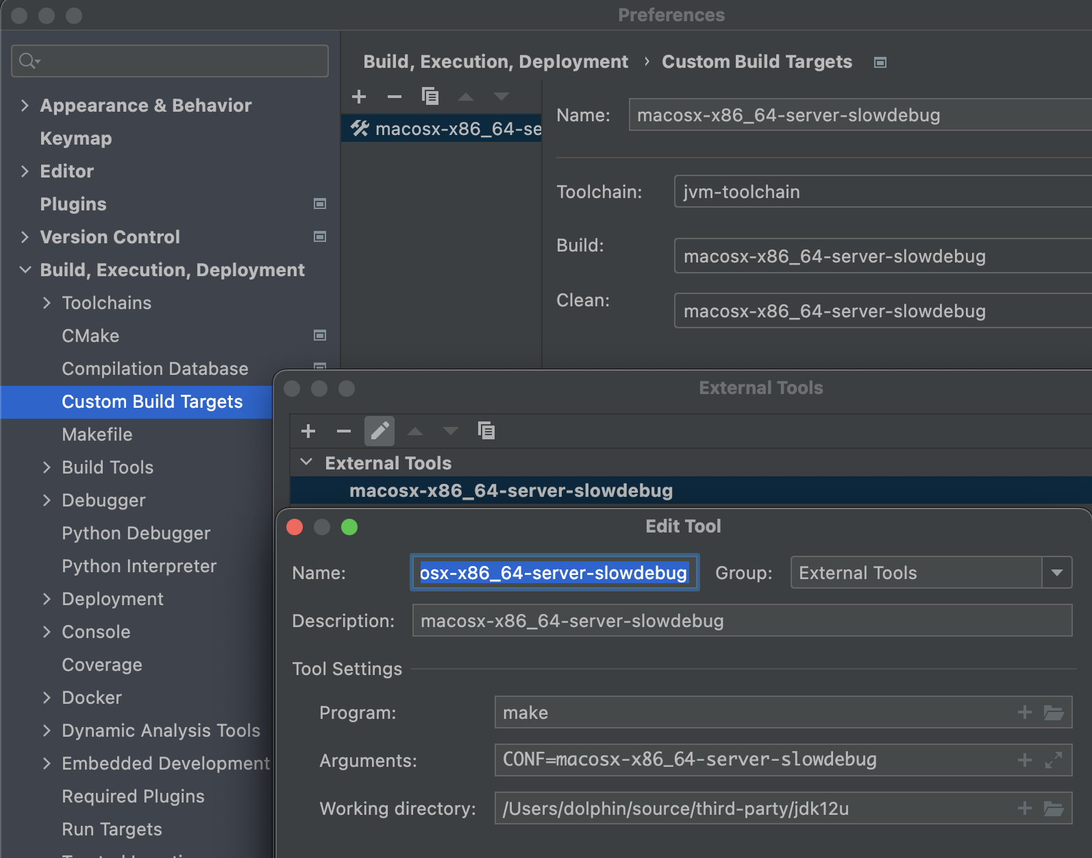 bash configure --with-boot-jdk='/Users/dolphin/.sdkman/candidates/java/11.0.10.hs-adpt' --with-debug-level=slowdebug --with-target-bits=64 --disable-warnings-as-errors --enable-dtrace --with-jvm-variants=server
