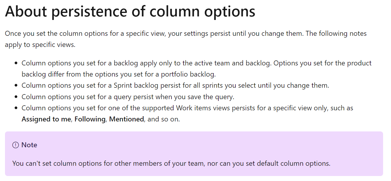 “您不能为团队的其他成员设置列选项,也不能设置默认列选项”。