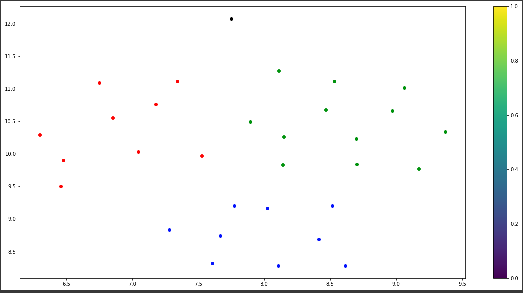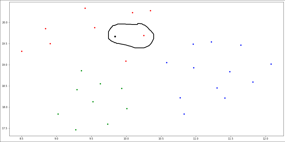 我测试的"new_tweet“变量有这些坐标,这要归功于umap: x=9.935,y=18.440