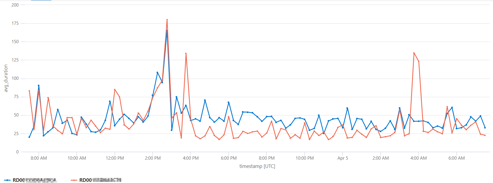 在Azure应用服务度量中,我们可以将响应时间(以及任何其他度量)划分为实例。但是,例如,我们如何创建阈值监控?有一个特性可以对单个定义的实例名称进行阈值监视。但是,由于我们的规模很大,这是没有帮助的。我们将度量转发到日志分析工作区,但这些指标只包含所有实例的总体/平均值,无法精确定位。