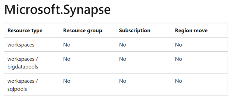 根据这一点,Microsoft不支持将Azure Synapse工作区移动到另一个资源组或或region。
