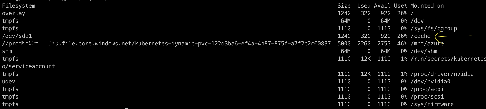 在pod规范中,我将ephemeral-storage设置为至少100 at (请参阅下面的资源描述)。但是,当我在吊舱中运行$ df -h时,临时存储(类型为emptyDir)的大小为124 g。我希望它能像我所要求的那样有100 G。我所期望的覆盖存储将接近1474 to (节点SSD磁盘大小)。