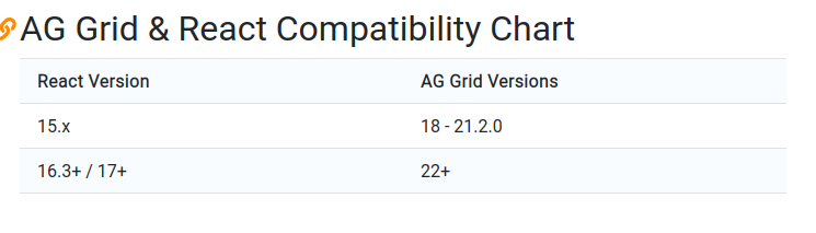 React Version AG Grid Versions