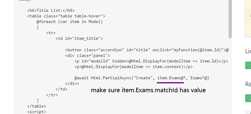 @await Html.PartialAsync("Create", item.Exams@*, Exams*@)