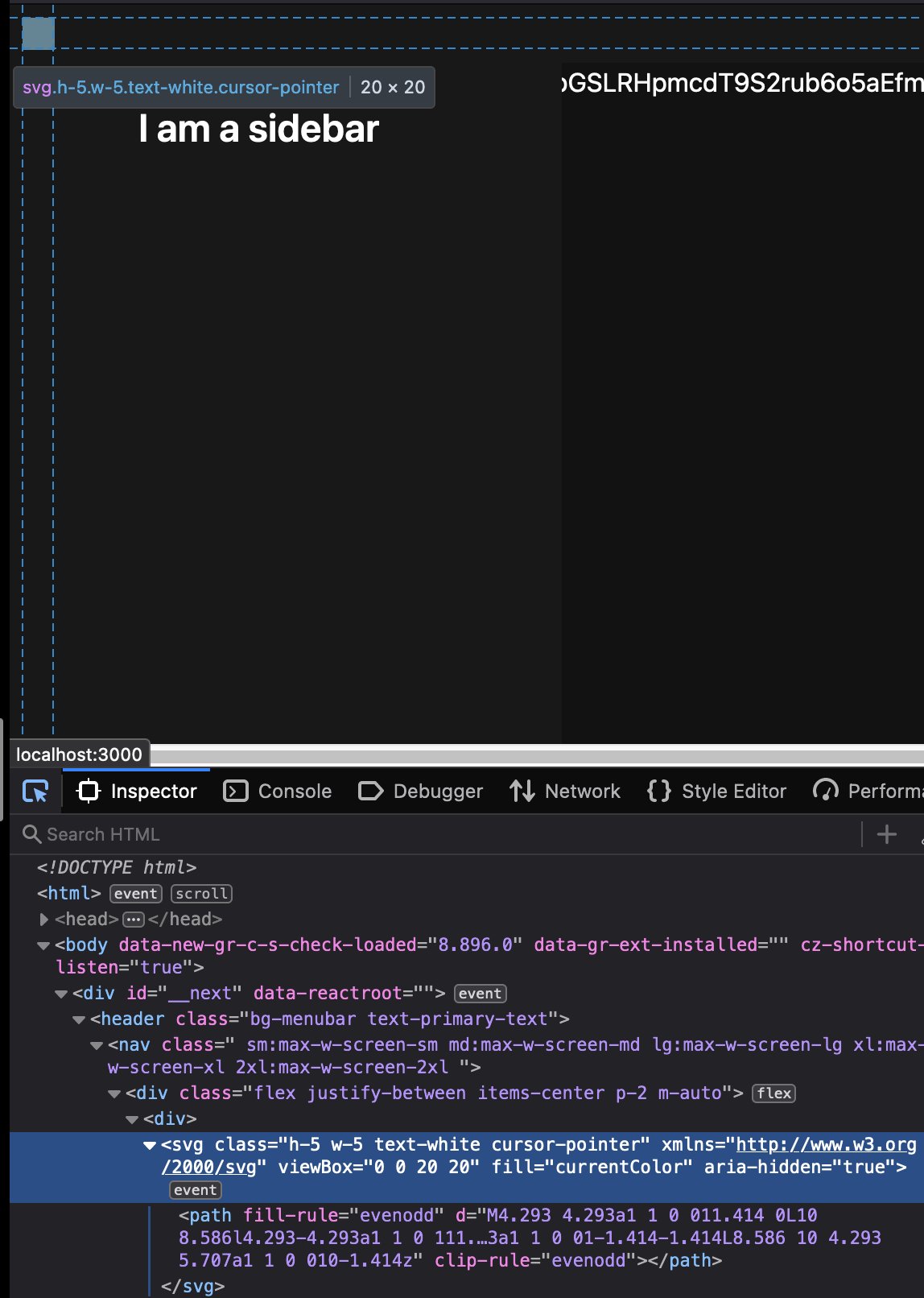 };我在有条件地展示一个侧边栏。XIcon正在我的领地里闲逛。