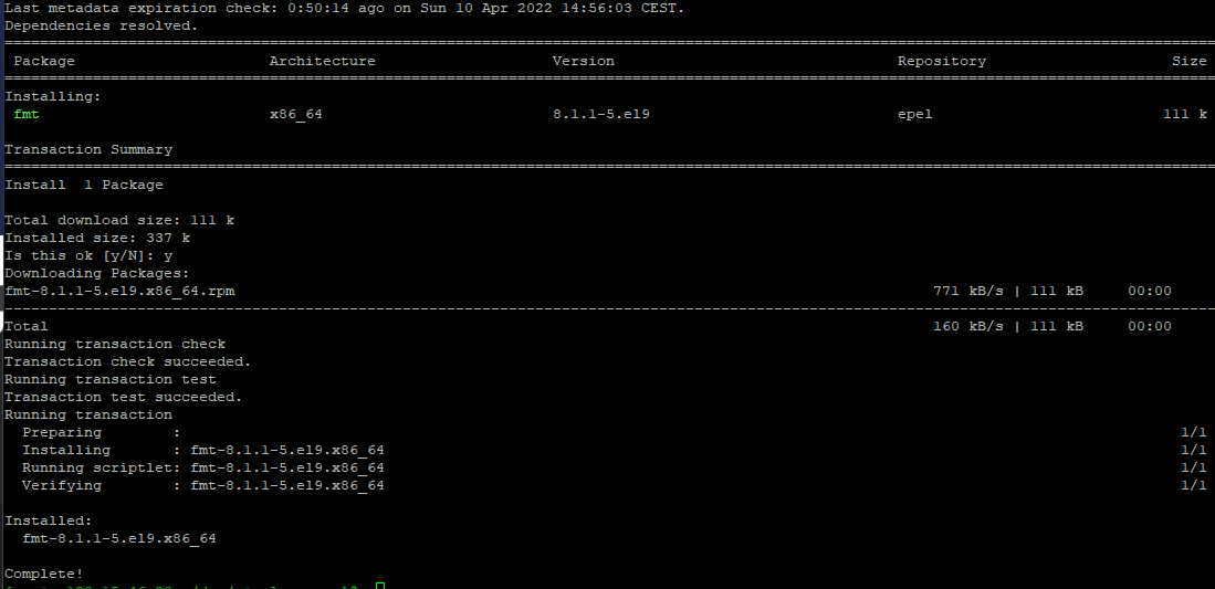 如何在不手动构建fmt项目的情况下在CentOS9 上使用库?