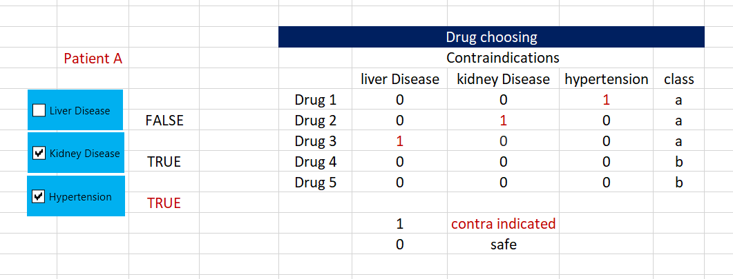 从评论中可以明显看出,只有具备必要的临床知识的人才能确定要考虑的药物种类;因此,下面的建议使用细胞I12中的下拉列表,让适当合格的用户做出这一选择: