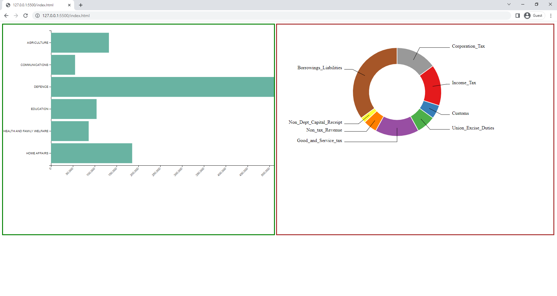 我分别在条形图和饼形图的单独页面上做了两个单独的图,现在我想将这两个图组合在一个页面中,这样我就可以有一个仪表板了。但是当我开始将主页面中的两幅图组合起来时,这是不可能的,它们相互重叠。代码: