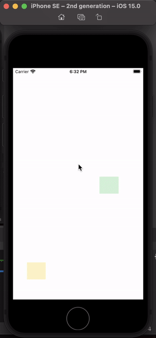 在两个视图中添加碰撞、另一个重力行为和一个动态项行为,我们得到以下效果: