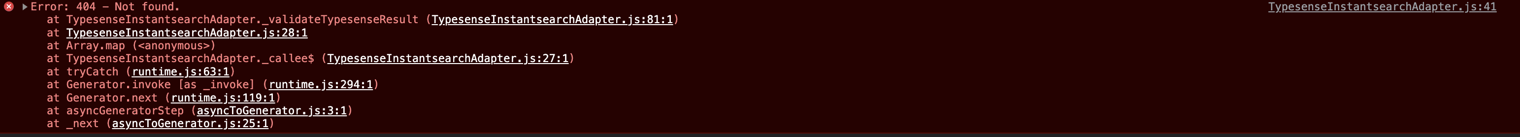 我不知道什么东西没被找到。我已经确保Typesense云节点URL和API键都是正确的。这条信息到底指的是什么,我在这里做错了什么?