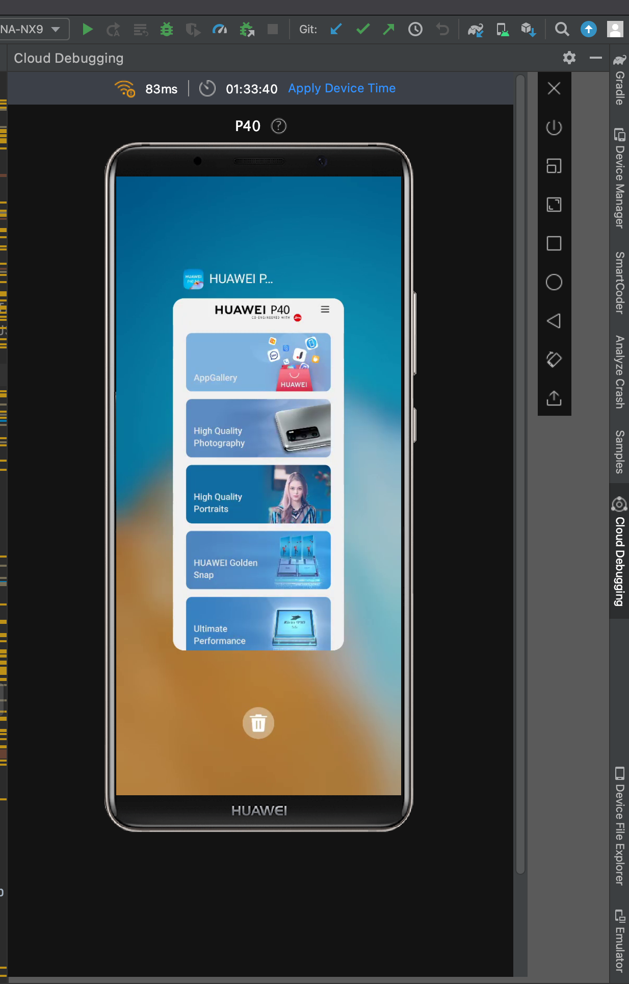 您可以选择另一个云调试设备,如Mate 30 Pro或P40 Pro。他们不显示飞溅广告。
