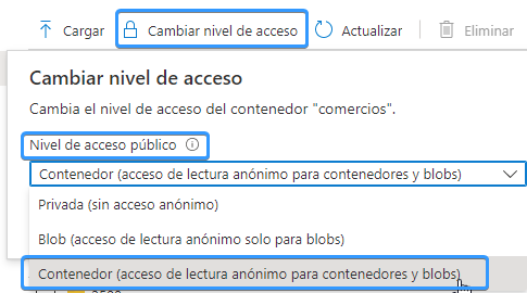 我的控制台是西班牙语的,对不起,但是在这个映像中,您可以看到要配置公共级别的选项。