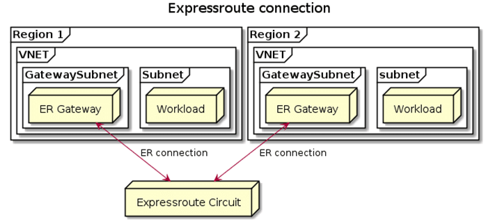 ·此外,您还可以使用“快速路线”将多个Azure区域的VNET连接在一起。连接到快速路由电路的每个VNET都成为同一路由域的一部分。这意味着,每个连接到regardless路由的VNET,无论是在同一区域还是在不同的区域,都将相互连接。这个连接模型的缺点是所有的流量都被固定在快速路线的窥视位置上。这意味着您将引入额外的网络延迟。这两个网关之间的连接将发生在窥视位置,但不会通过对等网络。也就是说,连接停留在Microsoft网络上,但是发夹发生在窥视位置。有关上述情况的说明如下: