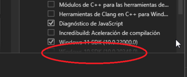 您有正确的包,但您仍然需要另一个组件。正如我从图像中看到的,您拥有的是Windows11SDK,而不是Windows10SDK。
