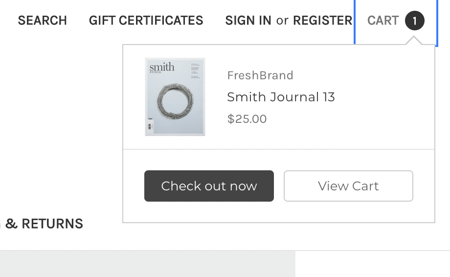 基石没有像你这样的小手推车。在默认情况下,有一个下拉迷你推车,但它不是太详细。您可以看到默认的Cornerstone迷你购物车,方法是向您的购物车中添加一个项目,然后在标题中单击" cart“。https://cornerstone-light-demo.mybigcommerce.com/