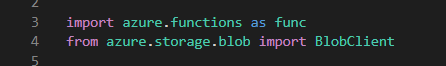 在完成上述步骤之后,我们可以同时使用import azure.functions as func和from azure.storage.blob import BlobClient。