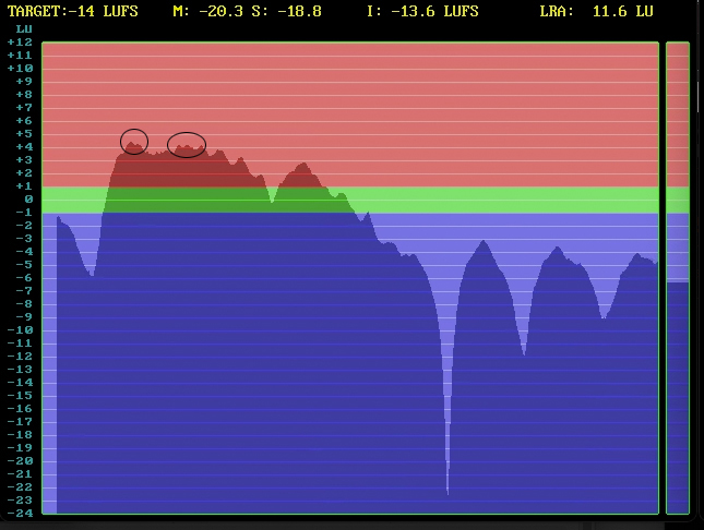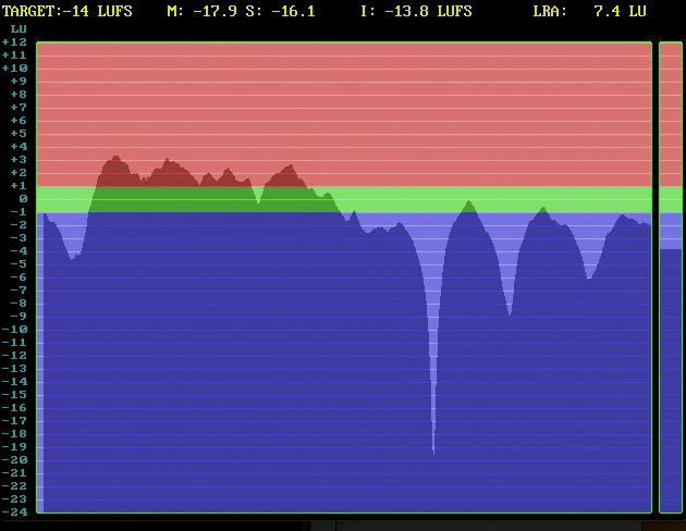 降低范围参数似乎有帮助。我可以使用-14 LUFS没有阻尼。在进行可视化时,我可以看出为什么: