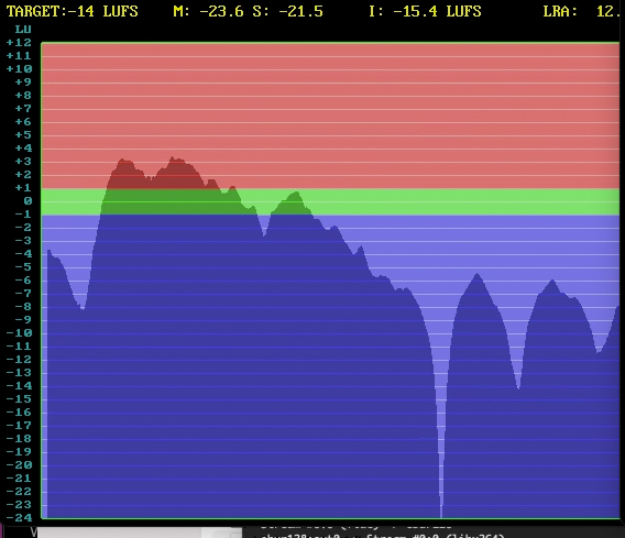 事实上,似乎ffmpeg正常化是在做它的规范化,这导致了声音的变化。Rolf的可视化工具清楚地显示了当规范化更改输出图时出现的问题。这不是要保持足够低的水平,而是如何实现这一目标。