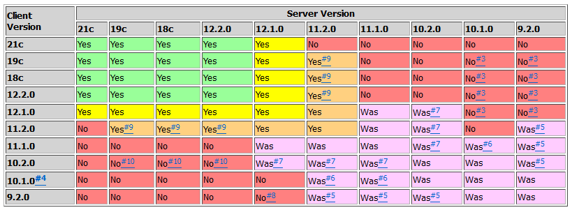 不能将Oracle客户端版本21连接到(20年以上) Oracle 9i数据库。请参阅不同Oracle版本的Client / Server互操作性支持矩阵