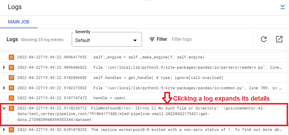 run1.submit()我很高兴看到编译的管道没有任何错误,并设法提交了作业。然而,“我的幸福持续时间很短”,比如当我去顶点AI管道时,我偶然发现了一些“错误”,比如: